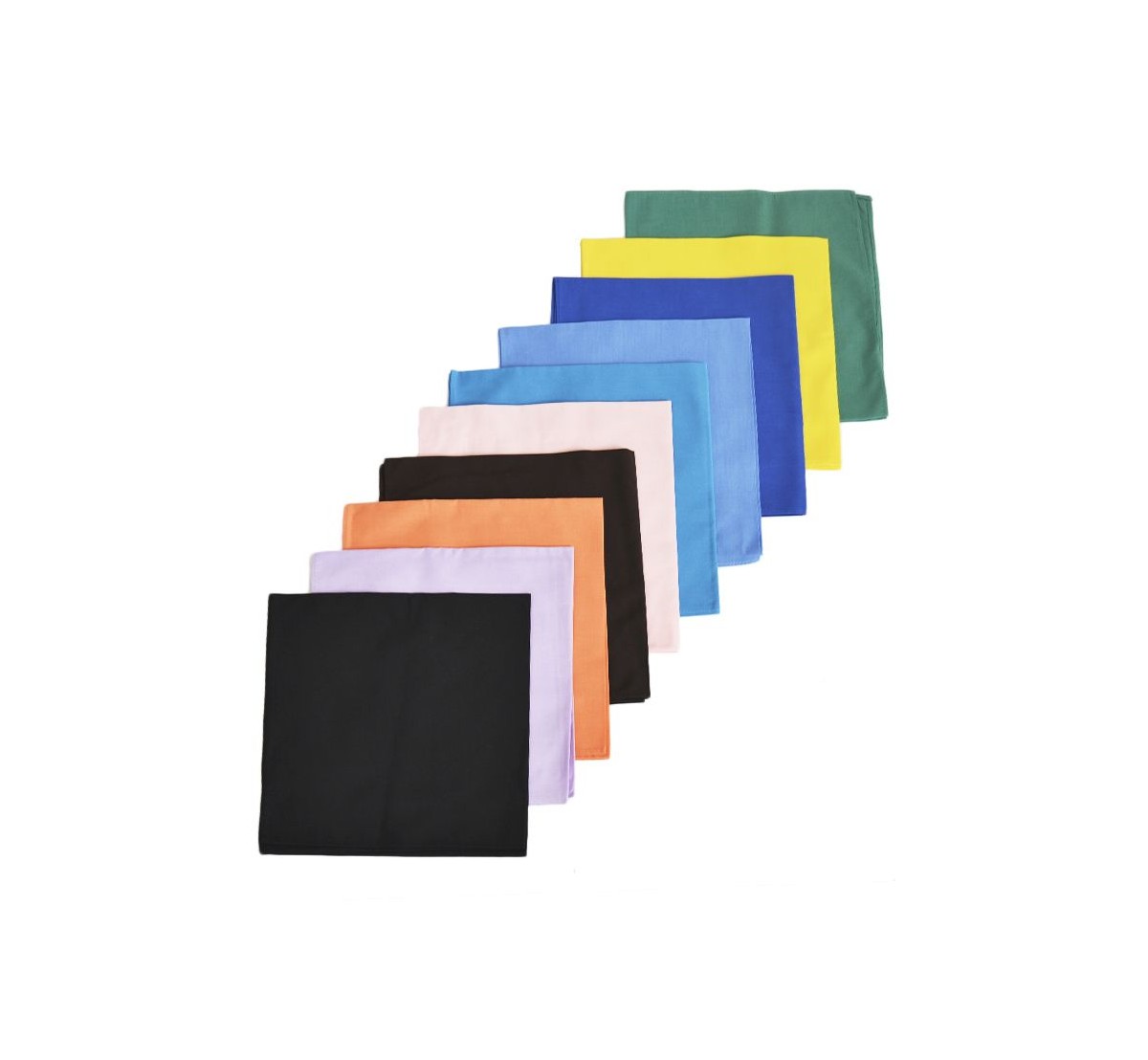 Pañuelo liso cuadrado, asociado a muchas fiestas y romerías en regiones de toda España. En Traje Regional te ofrecemos un pañuelo de fiesta liso, confeccionado de forrma cuadrada y rematado com dobladillo.