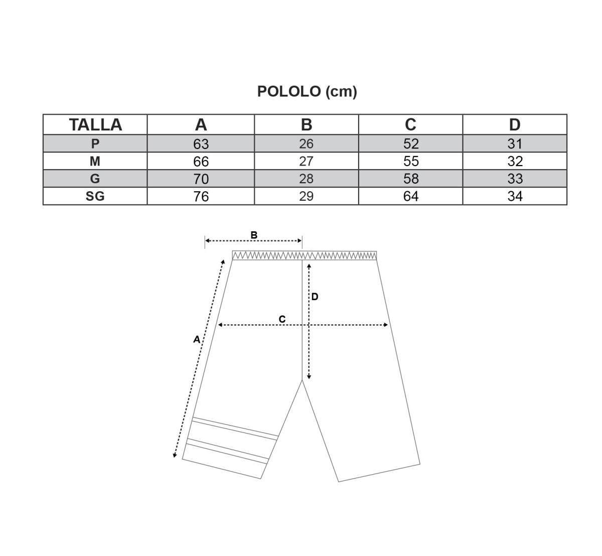 Tallas: P, M, G, SG
